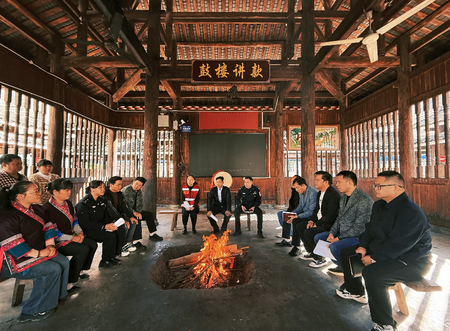 11月14日,廣西壯族自治區(qū)柳州市三江侗族自治縣古宜鎮(zhèn)南站社區(qū)祥和鼓樓內(nèi),政法干警與社區(qū)干部、居民齊聚一堂,開展“鼓樓議事”,面對面調(diào)解糾紛、分析治安形勢,共同為法治社區(qū)建設(shè)建言獻策,凝聚平安合力。