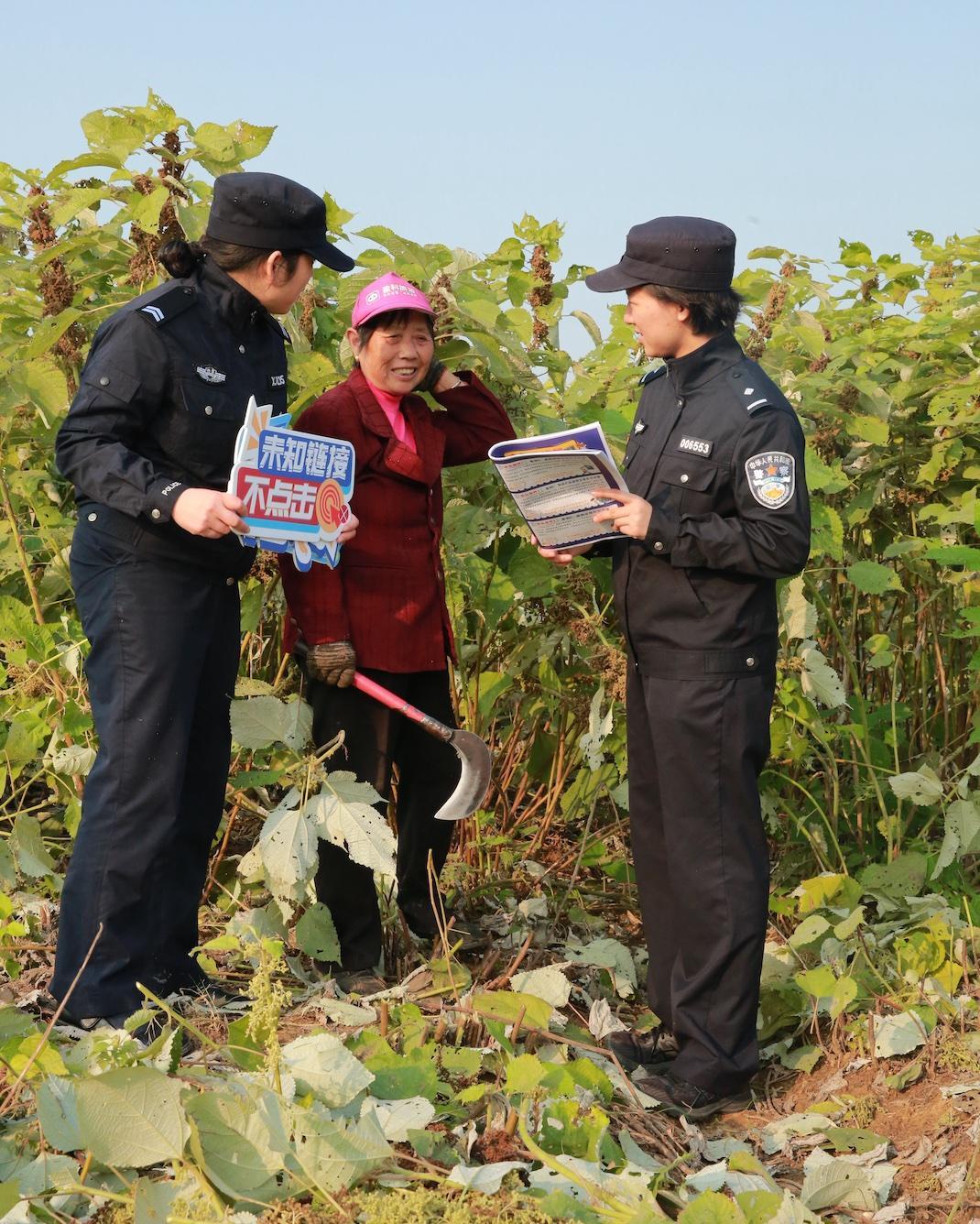 11月18日,湖北省黃石市公安局開發(fā)區(qū)·鐵山區(qū)分局太子派出所民警走進(jìn)太子鎮(zhèn)朋畈村,以“拉家?!钡姆绞矫琶芗m紛,并向在苧麻地勞作的村民精準(zhǔn)宣傳反詐知識(shí)。