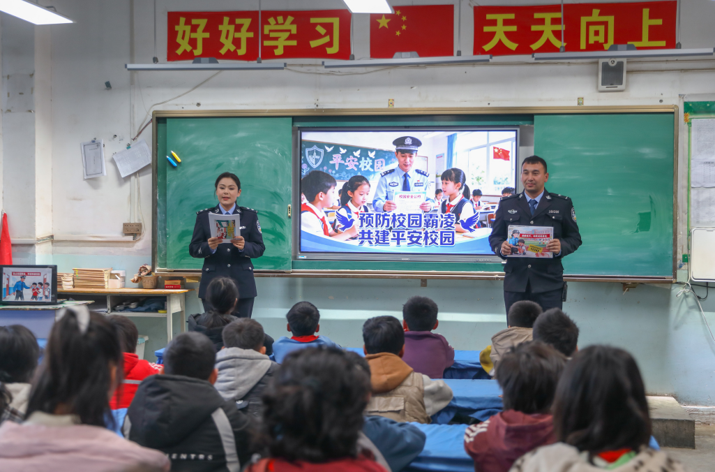 11月20日,新疆維吾爾自治區(qū)葉城縣巴仁鄉(xiāng)派出所民警深入巴仁鄉(xiāng)小學(xué)開展法治宣傳活動。民警以案例講解的方式為學(xué)生講解預(yù)防校園欺凌相關(guān)知識,引導(dǎo)學(xué)生在日常生活中增強法治意識,提升自我保護能力。