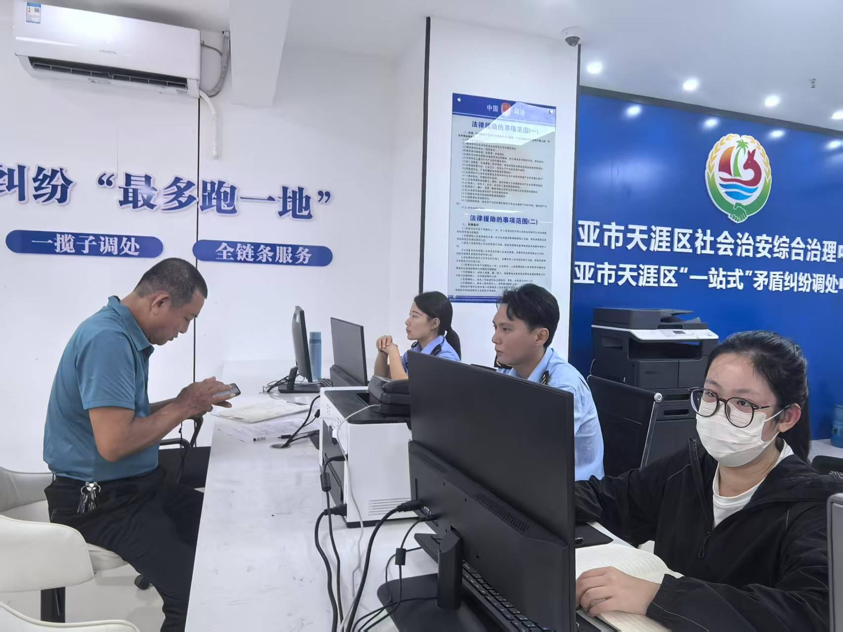“各社區(qū)綜治中心統(tǒng)籌推進(jìn)警網(wǎng)融合與矛盾糾紛調(diào)處一體化運(yùn)作,整合社區(qū)民警、網(wǎng)格員、法官、調(diào)解員等力量,開(kāi)展信息收集、矛盾調(diào)解、網(wǎng)格化服務(wù)、普法宣傳等工作,被群眾稱(chēng)為家門(mén)口的‘平安前哨’”。天涯區(qū)綜治中心主任謝萍萍說(shuō)。