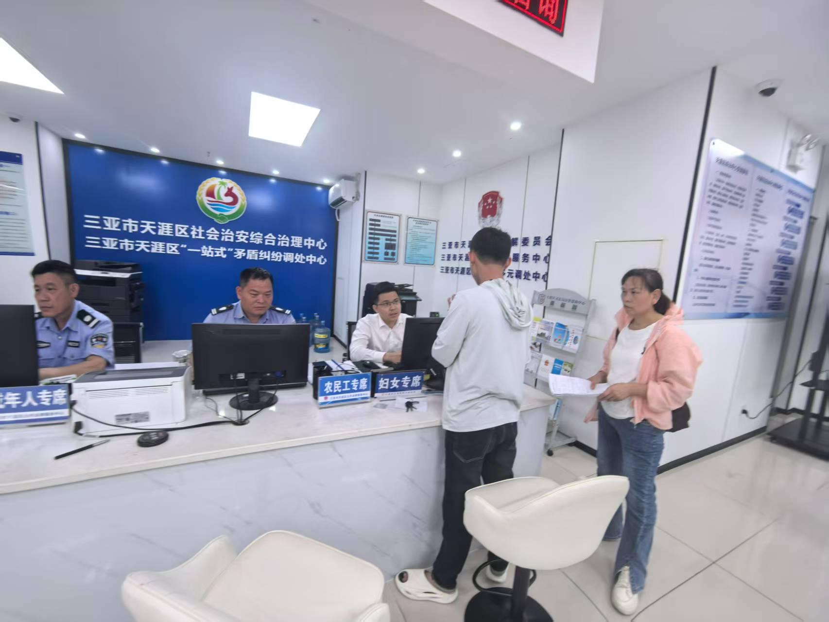 圖為務(wù)工人員到三亞市天涯區(qū)綜治中心咨詢(xún)問(wèn)題。