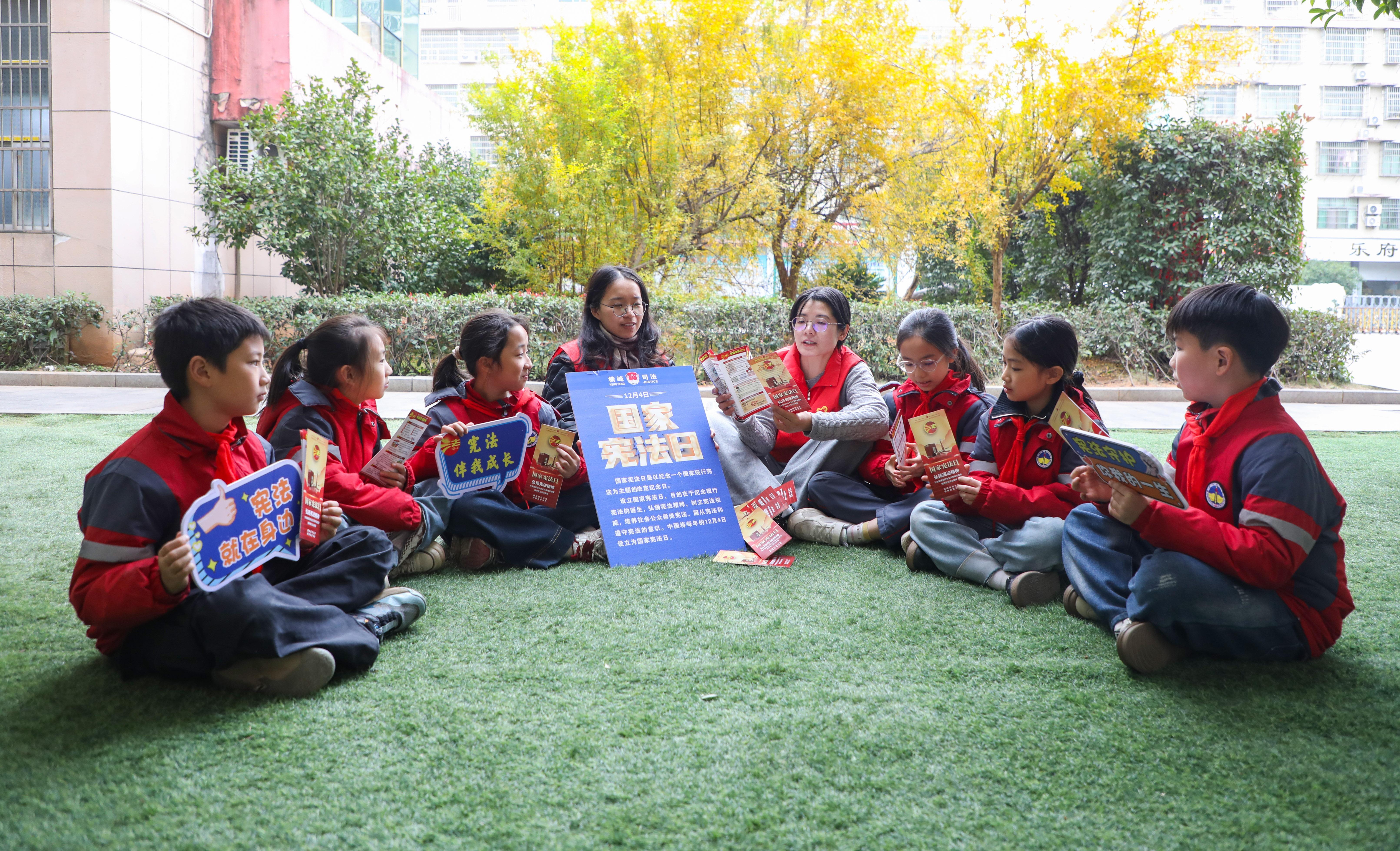 圖為12月5日,普法志愿者走進(jìn)橫峰縣第二小學(xué)為同學(xué)們宣講憲法知識(shí)。