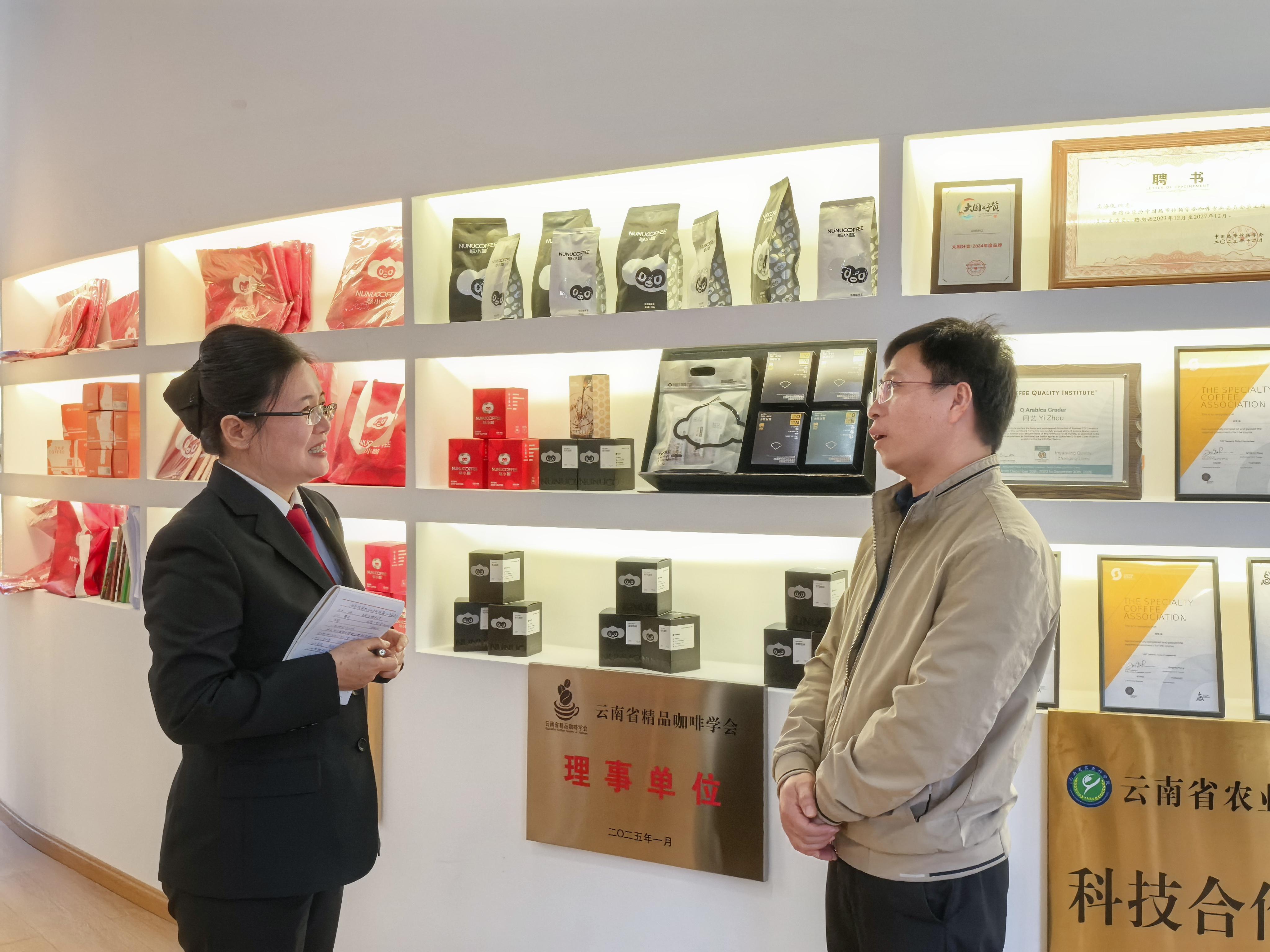 圖為法官深入咖啡企業(yè)精準(zhǔn)對接司法需求 趙曉云 攝