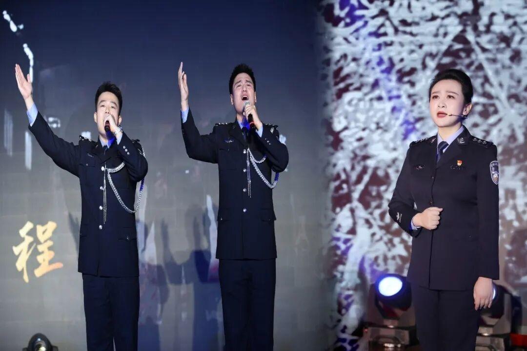 《傳承》篇章以《忠誠(chéng)從未改變》的故事錨定精神坐標(biāo),通過(guò)講述本溪市公安局第一個(gè)派出所——南芬派出所和刑偵支隊(duì)的過(guò)往與現(xiàn)在,帶領(lǐng)現(xiàn)場(chǎng)觀眾一起回顧鐵軍的“暖心事”與“英雄氣”。隨后,四位老領(lǐng)導(dǎo)登臺(tái)朗誦《公安贊歌》,一聲聲鏗鏘誓言,道盡公安民警代代相傳的使命擔(dān)當(dāng)。經(jīng)典歌曲《少年壯志不言愁》在熟悉旋律中涌動(dòng)著不變的熱忱,將氣氛推向高潮。最動(dòng)人的一幕當(dāng)屬傳承儀式:退休民警獲頒從警紀(jì)念章、2024級(jí)新警接受授銜以及旗幟的傳承,充分彰顯了本溪公安薪火相傳、接續(xù)奮進(jìn)的堅(jiān)定信念。