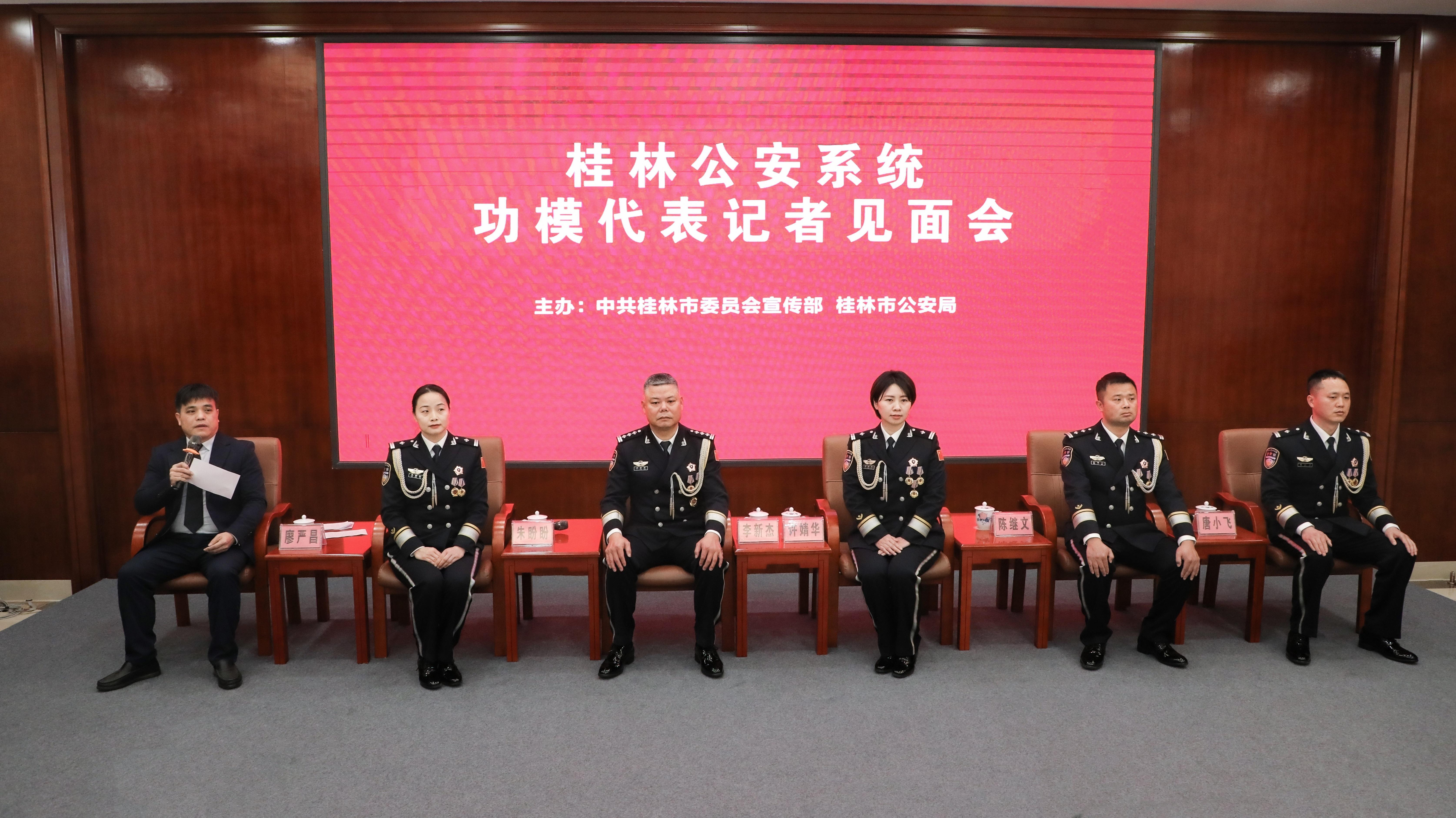 1月8日,在第六個中國人民警察節(jié)即將來臨之際,廣西壯族自治區(qū)桂林市公安局舉行功模代表記者見面會。5位來自不同警種崗位的桂林公安立功集體代表和英雄模范,現(xiàn)場分享了他們忠誠履職、服務人民、守護平安的實踐與思考。