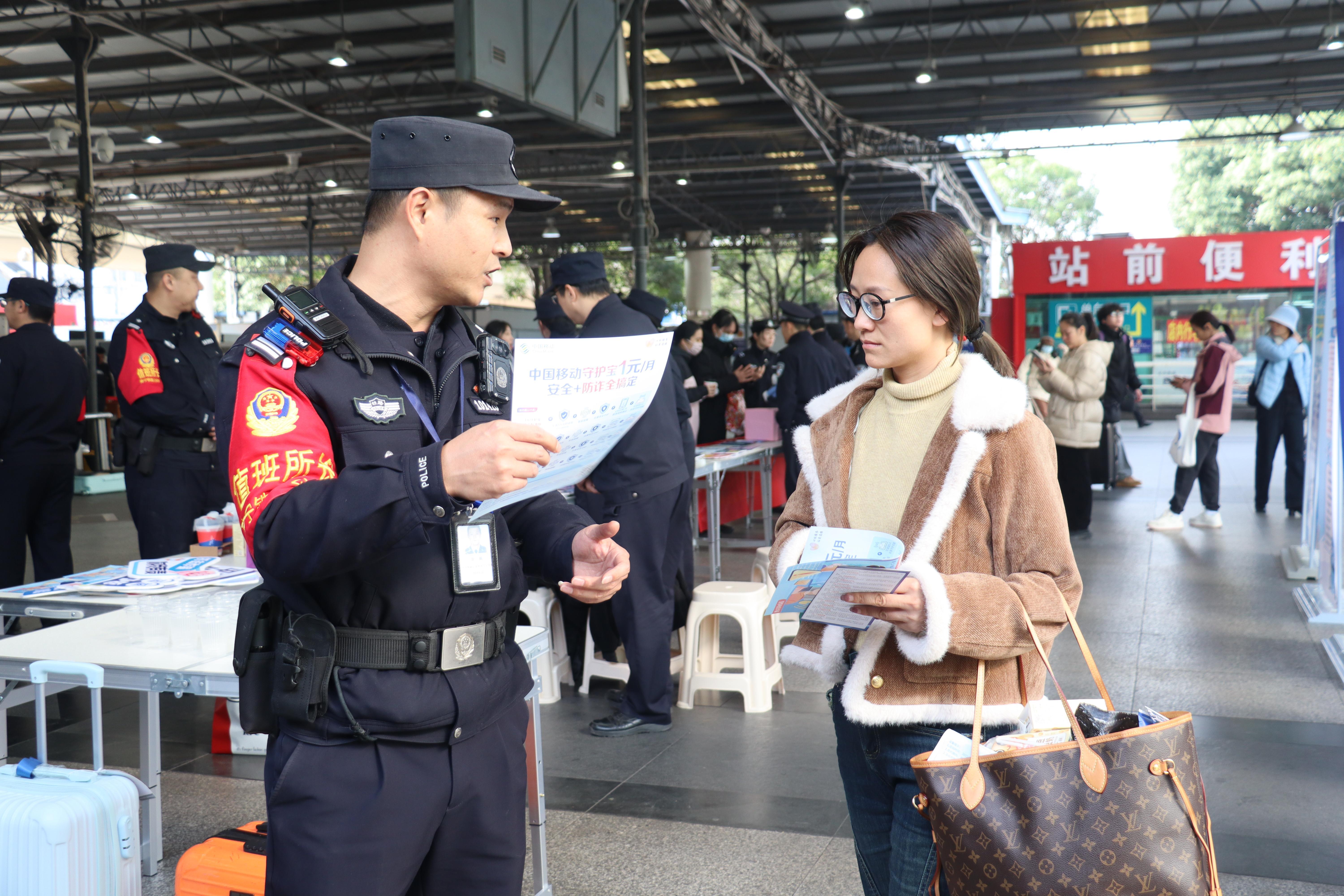 在第六個(gè)中國(guó)人民警察節(jié)來(lái)臨之際,1月9日,南寧鐵路公安局南寧公安處南寧站派出所聯(lián)合多部門(mén)在南寧站開(kāi)展110警察節(jié)主題活動(dòng),通過(guò)反詐知識(shí)宣傳、游戲互動(dòng)等形式,提升旅客的安全意識(shí)。
