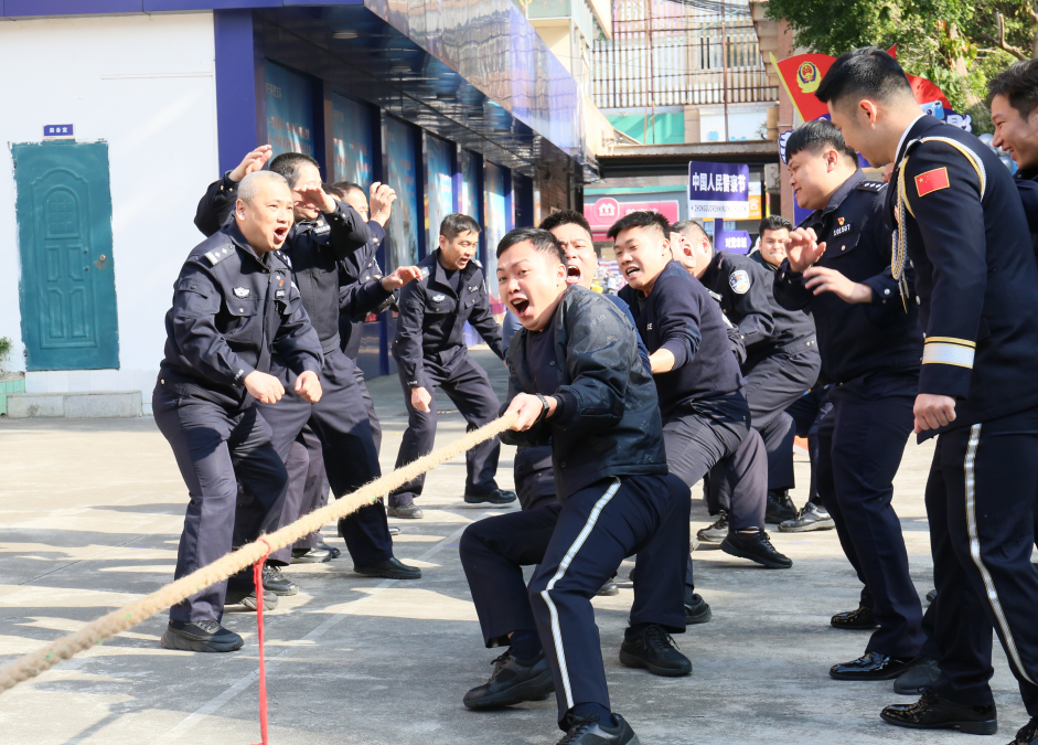 圖為南寧鐵路公安處開展拔河比賽。強(qiáng)志儉 攝