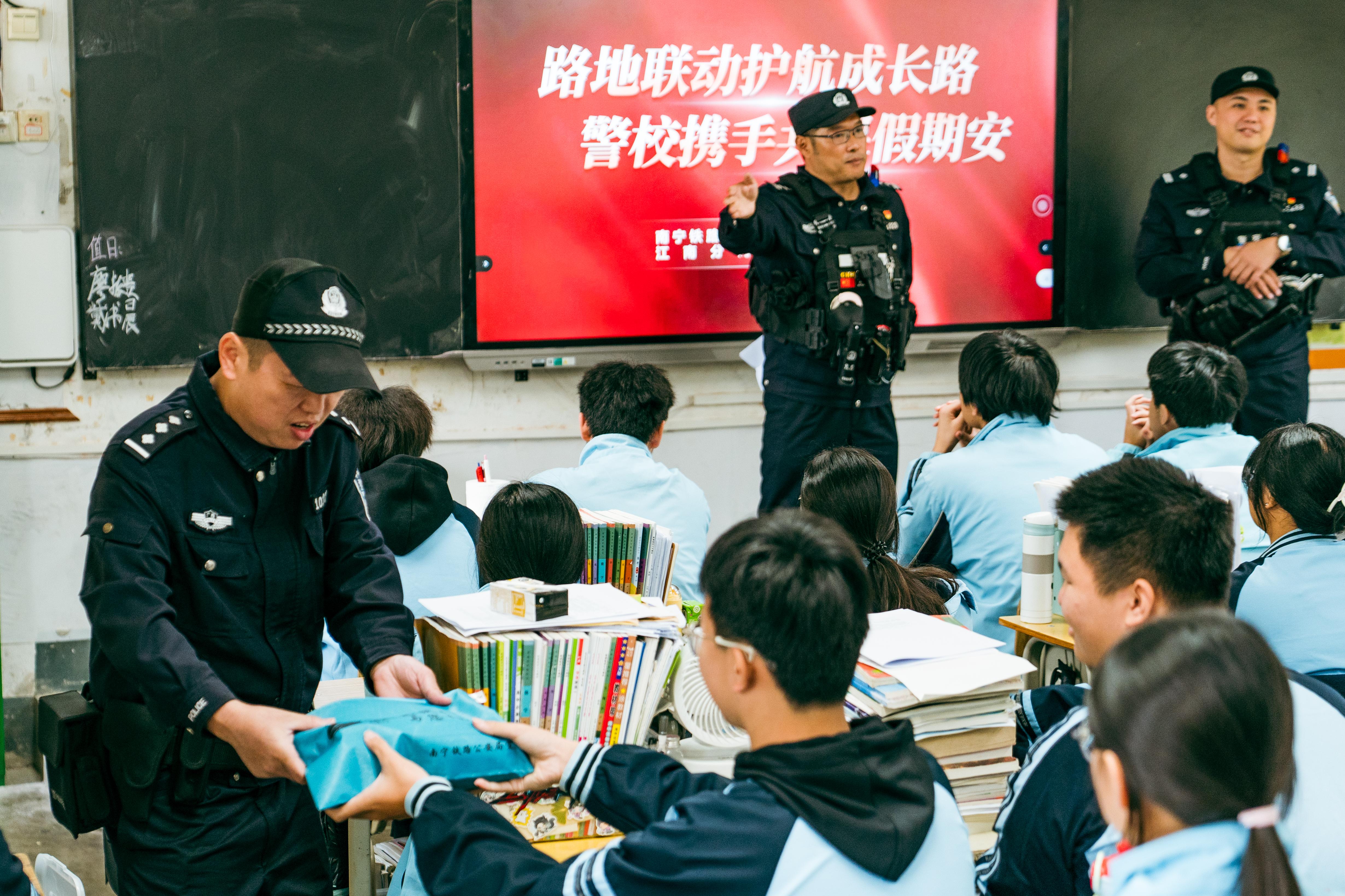 近日,南寧鐵路公安局南寧公安處南寧南站派出所聯(lián)合南寧市公安局,走進南寧市江西中學開展“護航成長路”安全教育活動。活動中,民警通過現(xiàn)場講解、互動問答等形式,向?qū)W生普及鐵路安全、防詐騙等知識,進一步增強青少年安全意識,筑牢假期安全防線。