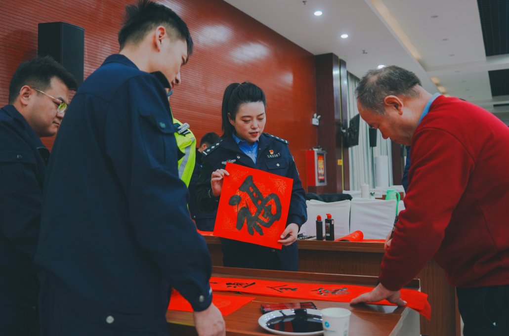 2月11日,新疆沙雅縣文化館組織民間藝術(shù)家及書法愛好者走進(jìn)縣公安局,開展“書香送福進(jìn)警營·翰墨濃情頌平安”主題文化活動(dòng)。藝術(shù)家們以筆墨為載體,將真摯的祝福與崇高的敬意凝于一副副春聯(lián)之中,為常年奮戰(zhàn)在維護(hù)穩(wěn)定、服務(wù)群眾第一線的公安民輔警送去別樣的文化“年貨”和新春問候。