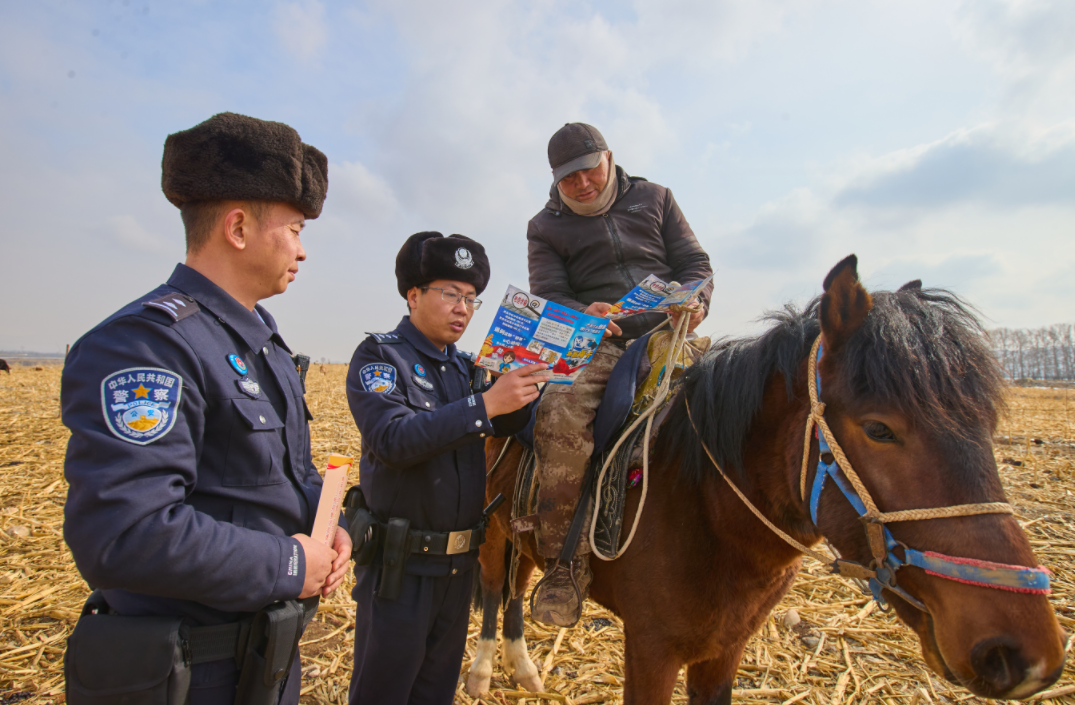 圖為民警向牧民宣傳防范電信網(wǎng)絡(luò)詐騙知識(shí)。