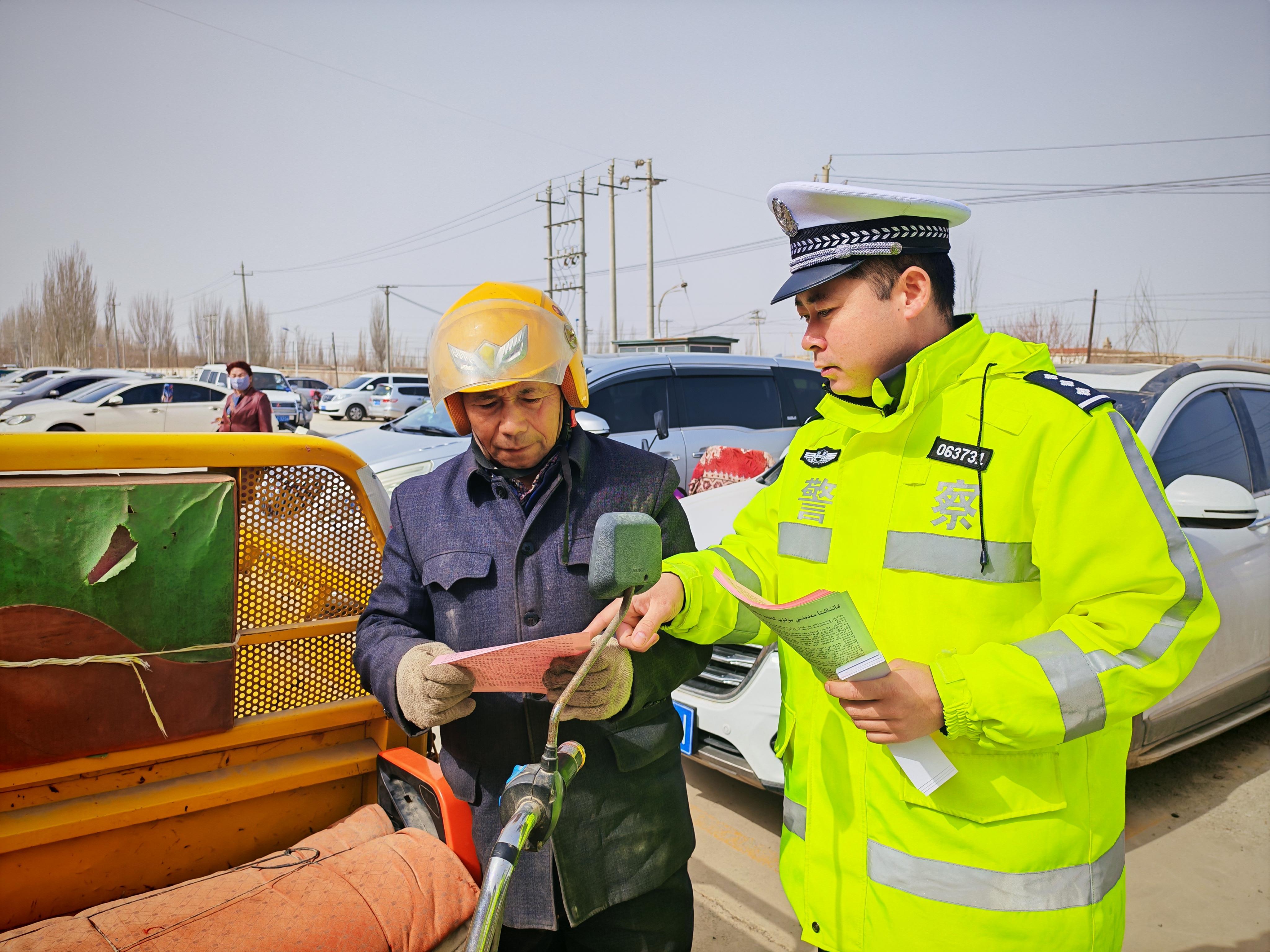 3月18日,正值新疆輪臺縣鄉(xiāng)村巴扎(集市)日,輪臺縣公安局交通管理大隊的民輔警借著趕集的人流,開展了一場別開生面的春季交通安全主題宣傳活動。針對春耕期間農(nóng)村地區(qū)農(nóng)用車、摩托車出行頻繁的實際,民警緊扣群眾出行場景,結(jié)合本地真實案例,面對面講解農(nóng)用車違法載人、騎乘摩托車不戴頭盔、酒駕醉駕等行為的危害,讓交通安全知識在嘮家常中入腦入心。