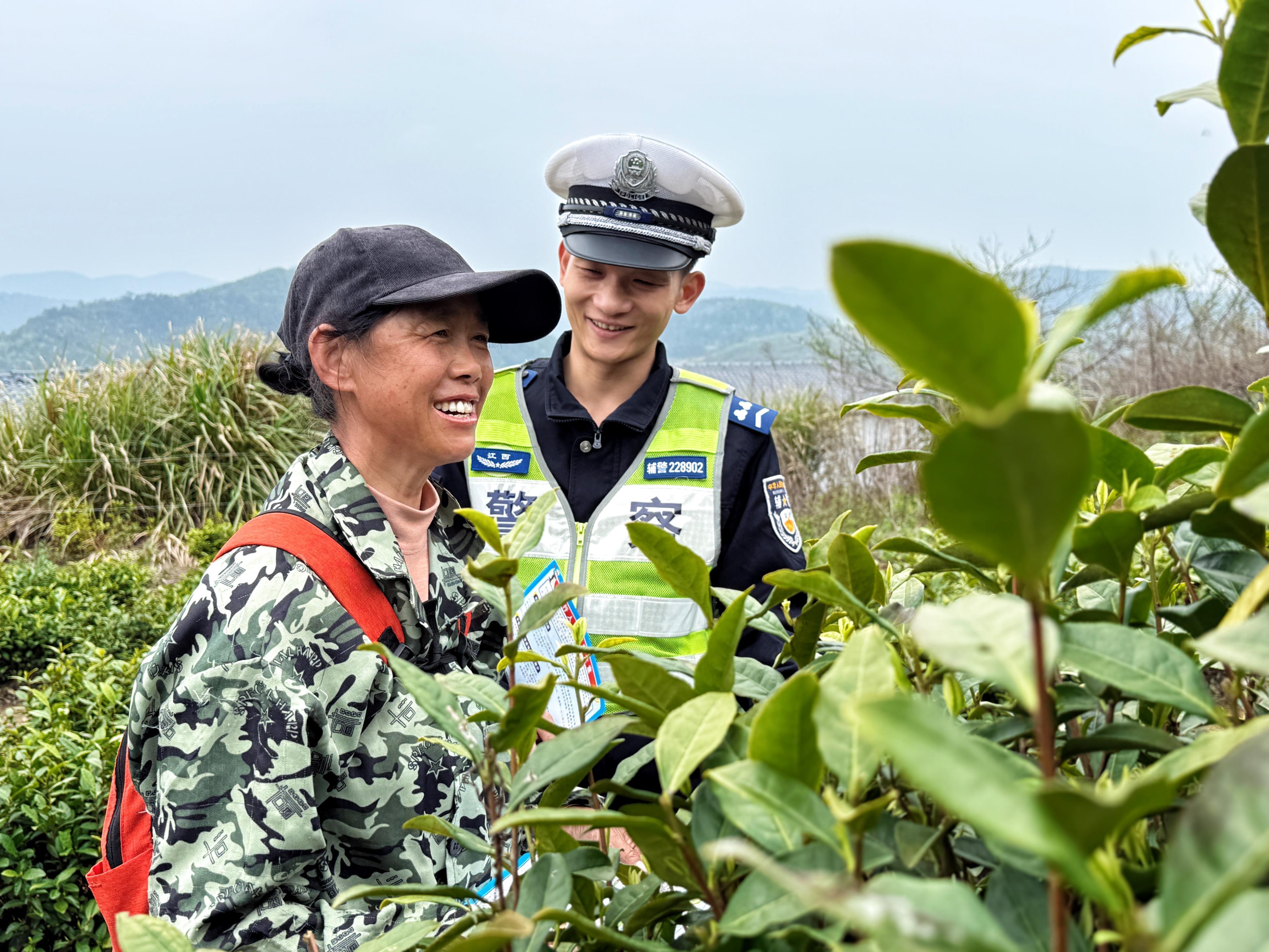 眼下正是清明茶的最佳采摘期,江西省武寧縣公安局交管大隊(duì)柯垅中隊(duì)組織民輔警走進(jìn)轄區(qū)茶園,通過嘮家常、以案說法、互動(dòng)答疑等方式,向茶農(nóng)宣傳“一盔一帶”等交通安全知識(shí),提醒茶農(nóng)安全駕駛、文明出行。