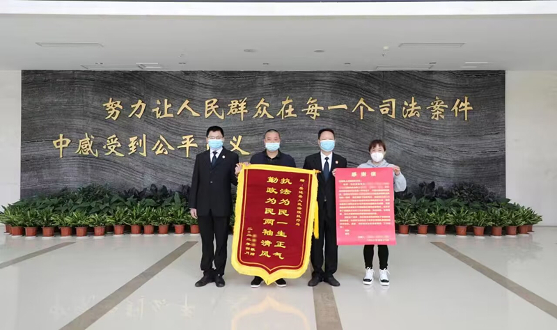 “這次多虧了執(zhí)行法官主動熱情、執(zhí)法規(guī)范、辦案迅速,我們才會順利獲得逾期交房違約金?!痹谠莱乜h人民法院執(zhí)行事務中心,當事人送來了錦旗和感謝信。