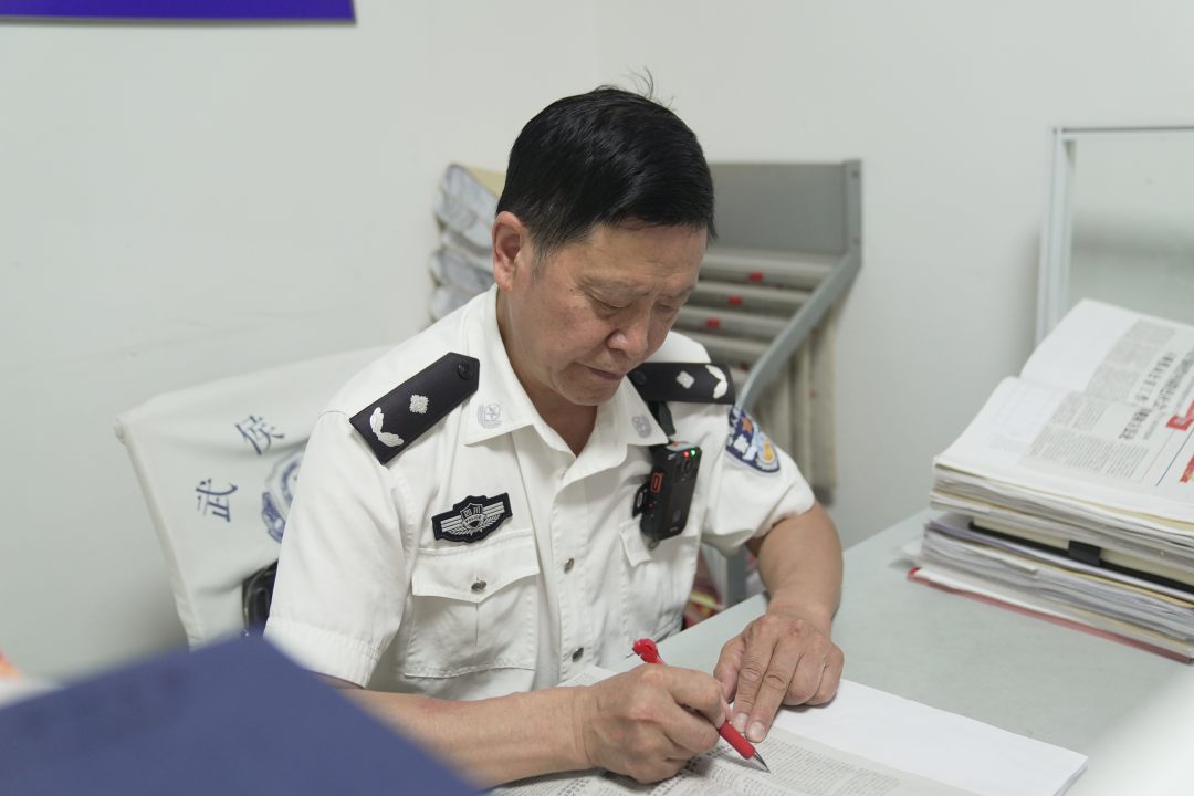 每天早會(huì)前,所上的老“國(guó)優(yōu)”、社區(qū)警務(wù)隊(duì)民警郭學(xué)彬在辦公桌前翻看工作筆記本,本上認(rèn)認(rèn)真真手寫記錄著每日工作、例會(huì)內(nèi)容、重點(diǎn)任務(wù)、完成情況……他逐頁(yè)翻看更新,對(duì)照完成進(jìn)度“銷賬”。