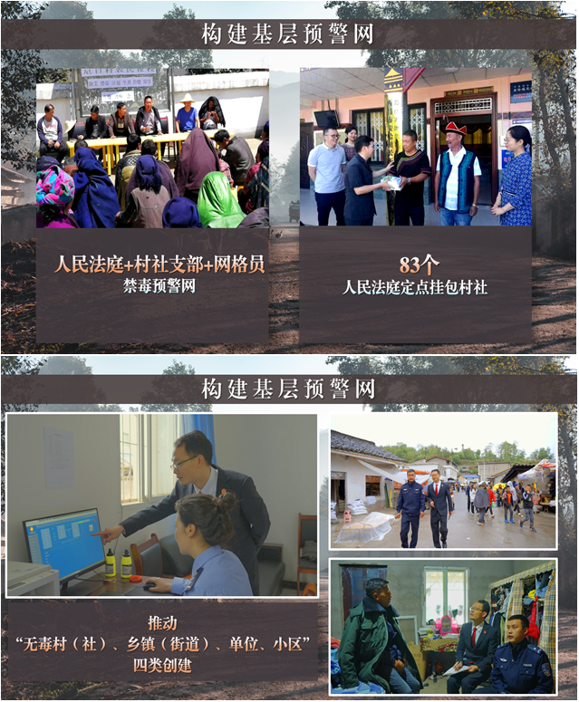 借鑒“楓橋經(jīng)驗(yàn)”,構(gòu)建“人民法庭+村社支部+網(wǎng)格員”禁毒預(yù)警模式,全州83個(gè)人民法庭定點(diǎn)掛包村社、包干到人,定期走村入戶(hù)教導(dǎo)群眾防毒,培訓(xùn)督導(dǎo)網(wǎng)格員落實(shí)毛發(fā)、污水檢測(cè),從源頭上預(yù)防和減少涉毒違法犯罪,推動(dòng)“無(wú)毒村(社)、鄉(xiāng)鎮(zhèn)(街道)、單位、小區(qū)”四類(lèi)創(chuàng)建。