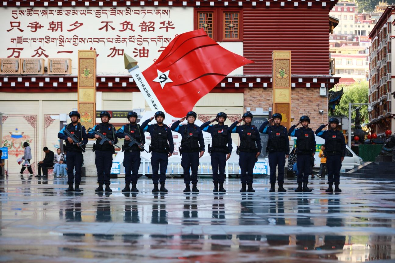 一個敬榜樣,一個敬未來。9月26日18時許,雨后的四川省甘孜藏族自治州白玉縣市政廣場,5歲萌娃澤稱巴登對白玉縣公安局特巡警大隊巡邏執(zhí)勤民輔警敬禮,獲得了10名警察叔叔整齊列隊回敬。
