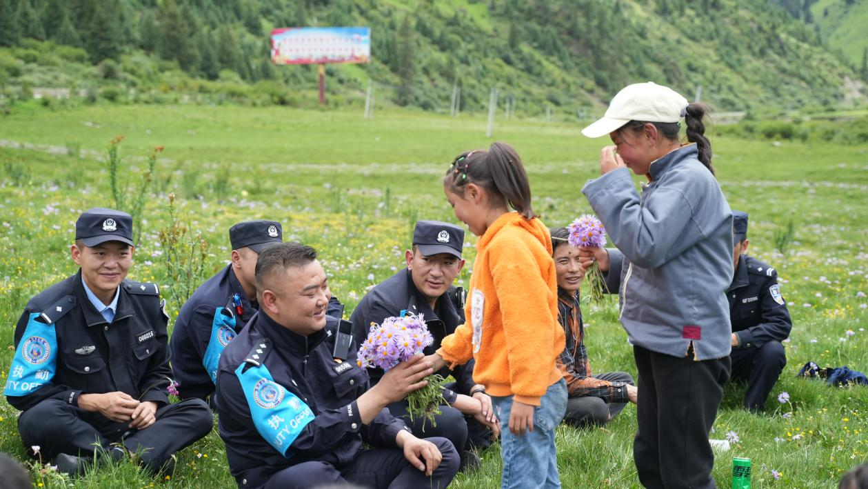 他要求派出所大門24小時(shí)都為群眾敞開(kāi),保證服務(wù)不缺位;為找到牧民丟失的牦牛,他帶領(lǐng)戰(zhàn)友兩天兩夜翻雪山,住牛棚,贏得原創(chuàng)《雪域之光》MV的禮贊;為保護(hù)牧民牦牛不被野狼侵?jǐn)_,他帶領(lǐng)戰(zhàn)友徹夜守護(hù)。真心一定可以換來(lái)民心。寒冬時(shí)節(jié),群眾為派出所送來(lái)取暖用的牛糞;盛夏時(shí)節(jié),孩子們?yōu)樗蛠?lái)親手采摘的花環(huán);花海中的黑帳篷,是他最美的偶遇;轄區(qū)群眾最擔(dān)心的事,就是害怕他調(diào)走......這就是對(duì)為民快要禿了頭的“小高”所長(zhǎng)追光路上最好的禮遇。