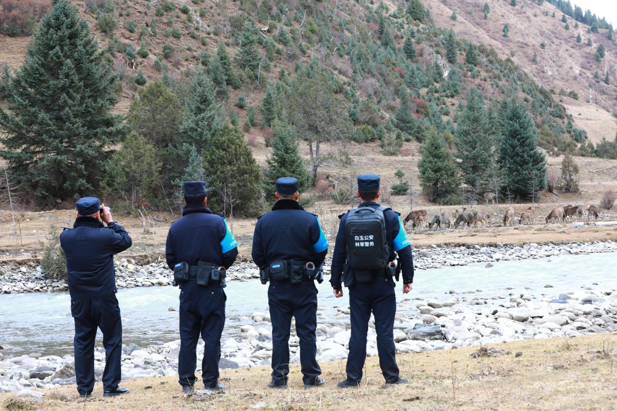 白玉縣共有森林面積53萬(wàn)公頃,森林蓄積量位居全省第二、全州第一。3000多只白唇鹿,常年現(xiàn)身轄區(qū)察青松多自然保護(hù)區(qū)奔跑嬉戲,這是他眼里最靈動(dòng)的風(fēng)景線。自2013年4月在白玉縣森林公安局參加工作以來(lái),8年時(shí)間他都與林為伍,堅(jiān)守在護(hù)航生態(tài)安全第一線,為“金沙林海盛德白玉”的名號(hào)越唱越響作出了突出的貢獻(xiàn)。2017年大年三十晚上,他成功偵破“2017.02.03”非法獵捕殺害珍貴瀕危野生動(dòng)物白唇鹿案,嫌犯被判處有期徒刑10年半,在全縣上下形成了空前的高壓震懾態(tài)勢(shì)。2023年11月9日傍晚,高照洪和森警大隊(duì)聯(lián)合巡山途中,在麻絨鄉(xiāng)察青松多自然保護(hù)區(qū)偶遇上百只下山喝水覓食的白唇鹿,可愛(ài)同框成為了一段舉國(guó)熟知的人與自然和諧佳話。