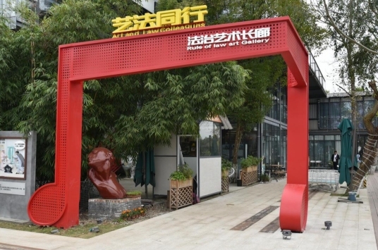 川音藝谷法治文化體驗基地位于新都區(qū)石板灘街道韓娥社區(qū),基地以做實普法體驗場景、做強法治藝創(chuàng)產(chǎn)業(yè)、做精藝創(chuàng)法律服務、做優(yōu)園區(qū)法治化營商環(huán)境為抓手,積極探索“守法普法”的新模式?;亻T頭采用二八音樂符號藝術變型設計,突出普法抓住“關鍵少數(shù)”。法治雕塑廣場采用經(jīng)典法治故事雕刻作品,展現(xiàn)民法典基本原則理念。法治長廊采用法治藝術場景引導+典型案例釋法拓展+交互教育沉浸體驗的方式展現(xiàn)熊博士的法治人生。同時,使用四川獨有物種熊貓,創(chuàng)作形象的熊貓法字LOGO;借鑒新都漢朝說唱俑,創(chuàng)作說法熊貓吉祥物。與川音藝谷項目的運營方建立合作機制,舉辦新都區(qū)法治文化作品展覽、評選活動,鼓勵創(chuàng)作具有法治內(nèi)涵的雕塑、書法、攝影、音樂等藝術產(chǎn)品作品。此外,基地布局川音藝谷法律之家,發(fā)揮社區(qū)法律顧問服務團隊的作用,積極為項目建設提供合同合法性審查等法律服務,為川音藝谷文創(chuàng)園建設保駕護航?;剡€設立川音藝谷知識產(chǎn)權保護工作站,融合多部門的職能作用,營造良好的國際營商環(huán)境,增強藝創(chuàng)產(chǎn)業(yè)創(chuàng)作創(chuàng)新的活力。