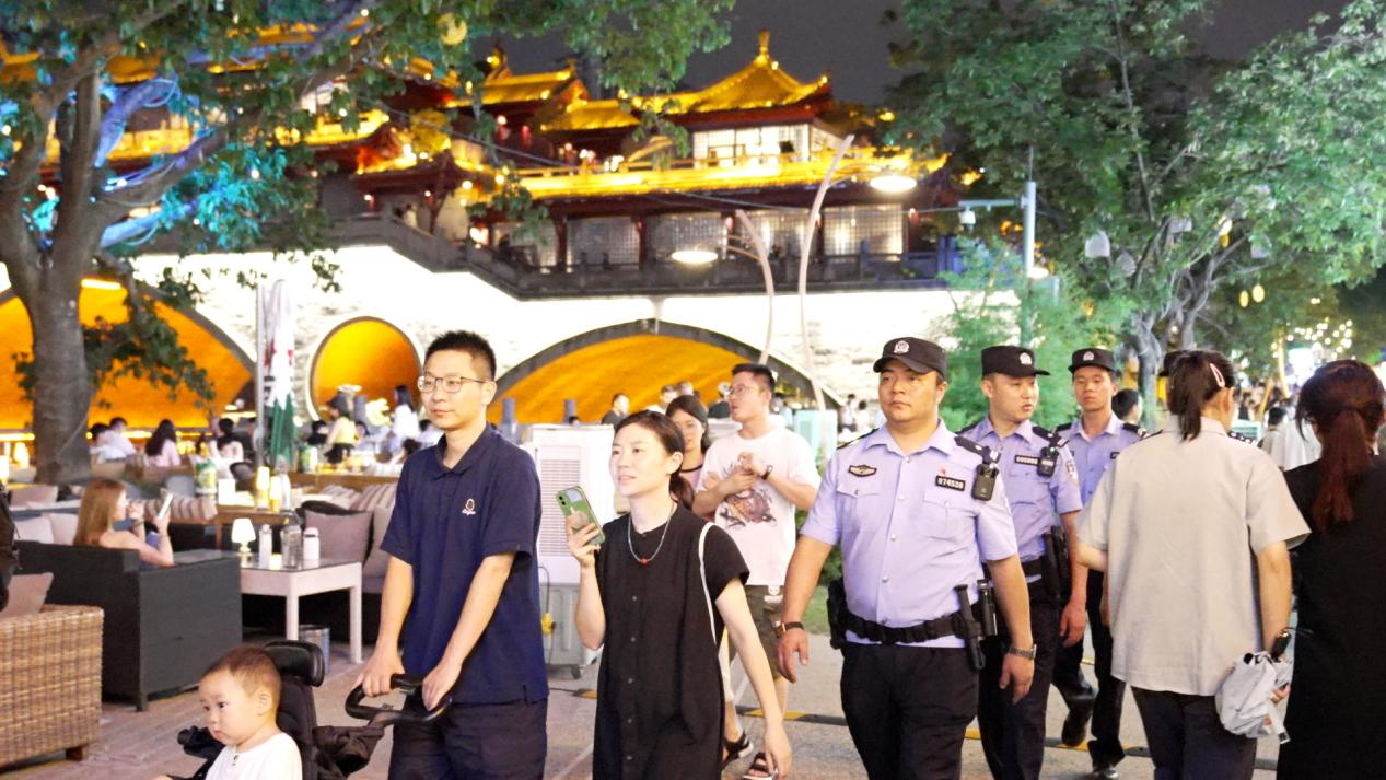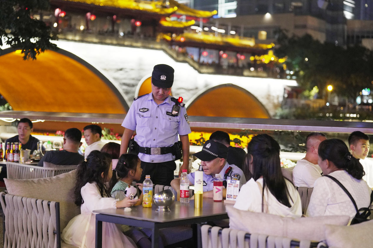 “無論是外地游客還是本地居民,很多人都喜歡在望江河邊吹吹風(fēng)、泡泡吧?!苯z管路的“管段”民警段軍2009年從交警分局調(diào)到望江路派出所后,15年來一直負(fù)責(zé)老馬路社區(qū)的相關(guān)警務(wù)工作。段軍說,每逢節(jié)假日來絲管路放松的人就特別多,所上也會(huì)投入更多精力在“酒吧街”和臨近的望江公園、川大博物館等景點(diǎn)及區(qū)域。從節(jié)前的消防安全檢查、治安隱患排查,到節(jié)日期間的巡邏防控、安全守護(hù),大家一絲不茍、全力堅(jiān)守。