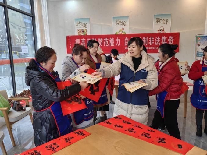 “嬢嬢,您聽說過非法集資嗎?非法集資就是以高回報率引誘大家進行投資,大家千萬不要上當,警惕天上掉餡餅。”濱清路社區(qū)臘八節(jié)活動現(xiàn)場,普法員用通俗易懂的語言向居民宣傳了什么是非法集資、非法集資的形式及危害等,為臘八節(jié)注入法治元素。