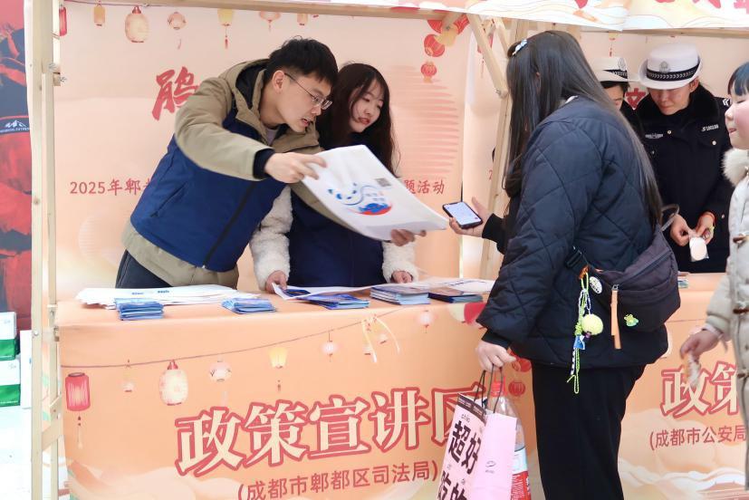 活動(dòng)現(xiàn)場,非遺川劇變臉、猜燈謎、非遺蜀繡、非遺捏面人、非遺糖畫等節(jié)目吸引眾多居民駐足觀看。普法員為觀看節(jié)目的群眾送上交通安全、防范電信網(wǎng)絡(luò)詐騙、聘請(qǐng)律師指南等普法讀本,結(jié)合典型案例耐心解答群眾的疑問,并介紹12348熱線、“成都司法通”小程序等免費(fèi)法律咨詢方式,引導(dǎo)群眾切實(shí)掌握獲取公共法律服務(wù)的方式,提升法治意識(shí)、增強(qiáng)自我保護(hù)能力。
