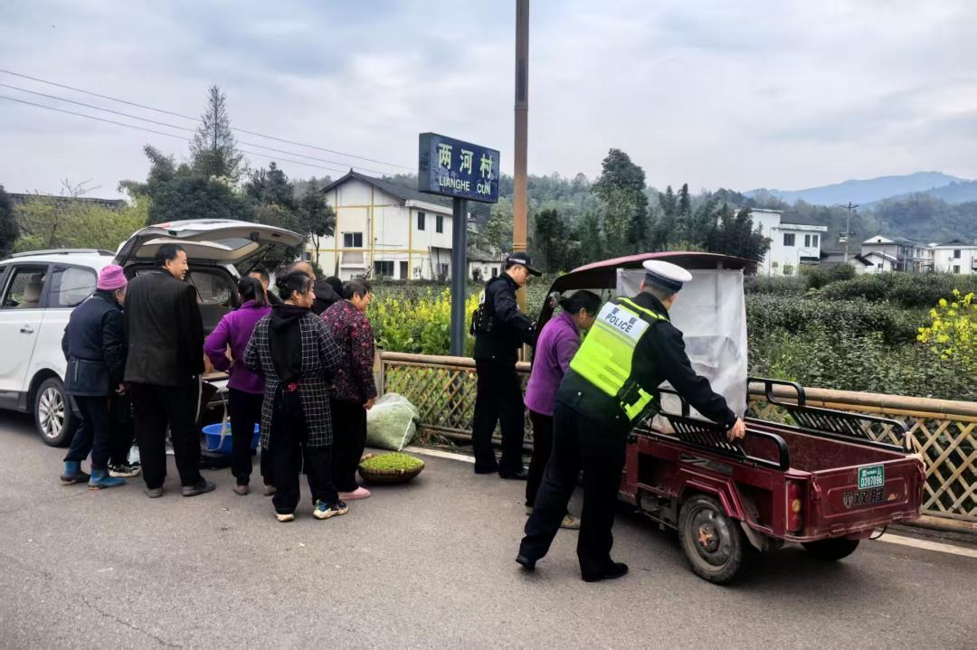 3月以來,隨著春茶采摘進(jìn)入黃金期,洪雅縣29.5萬畝茶園全面開采,鮮葉交易也迎來高峰,大量茶農(nóng)、茶商來往采摘購買茶葉。針對這一現(xiàn)狀,洪雅公安依托“交所合一”警務(wù)機(jī)制改革,整合派出所與交警力量,結(jié)合“生態(tài)+文旅警務(wù)”理念,將警務(wù)觸角延伸到茶山腳下、田間地頭,強(qiáng)化交通安全巡邏管控和隱患排查力度,全力護(hù)航采茶運(yùn)輸期間的道路交通安全。