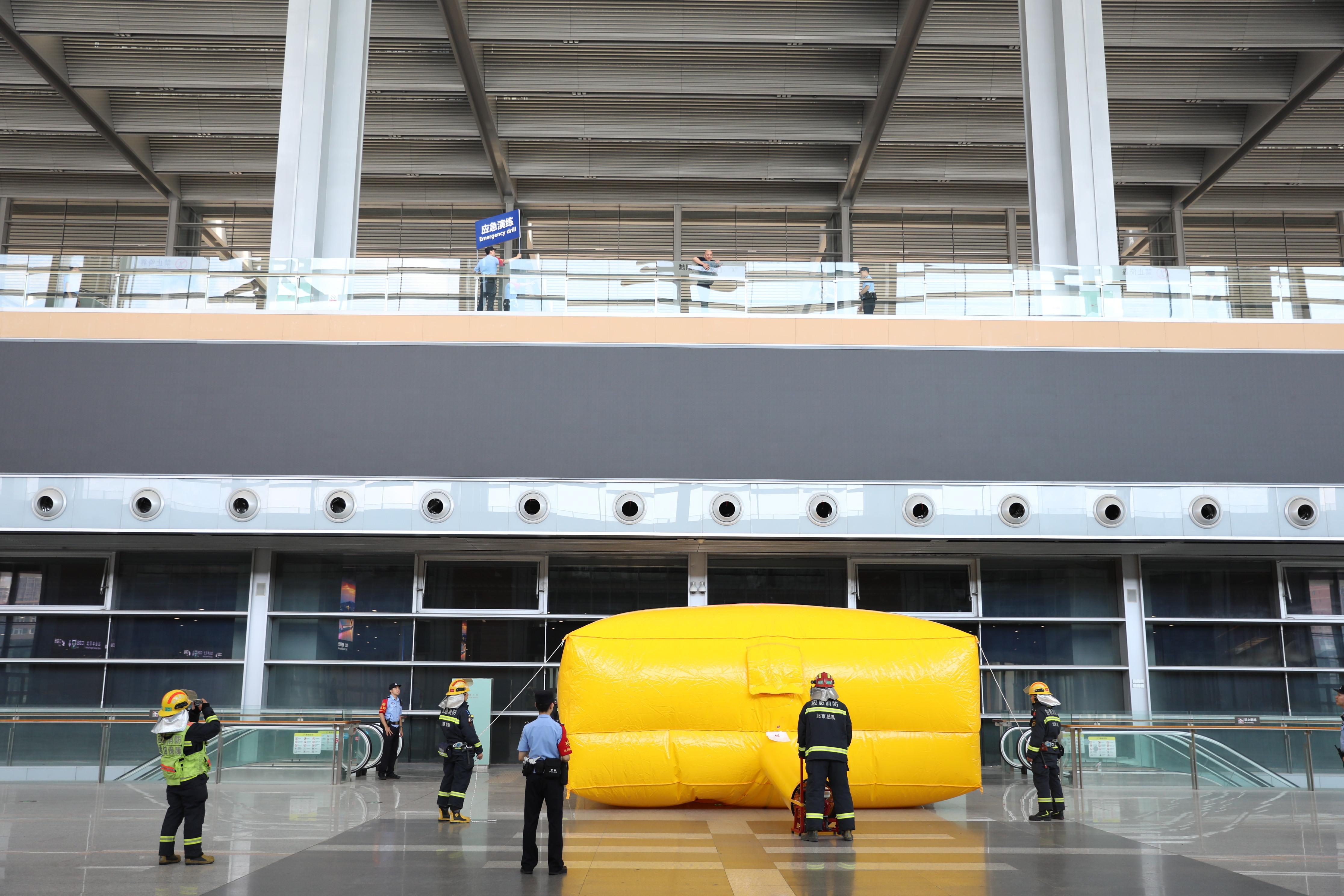 圖為北京鐵警聯(lián)合消防部門和豐臺(tái)客運(yùn)站開展應(yīng)急拉動(dòng)演練。