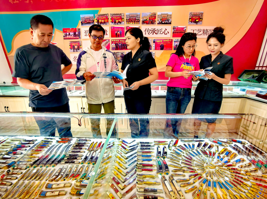 圖為9月17日下午,英吉沙縣法院“旅游景區(qū)法官工作室”工作人員在芒辛鎮(zhèn)小刀村景區(qū)向游客和商家開(kāi)展普法宣傳活動(dòng)。