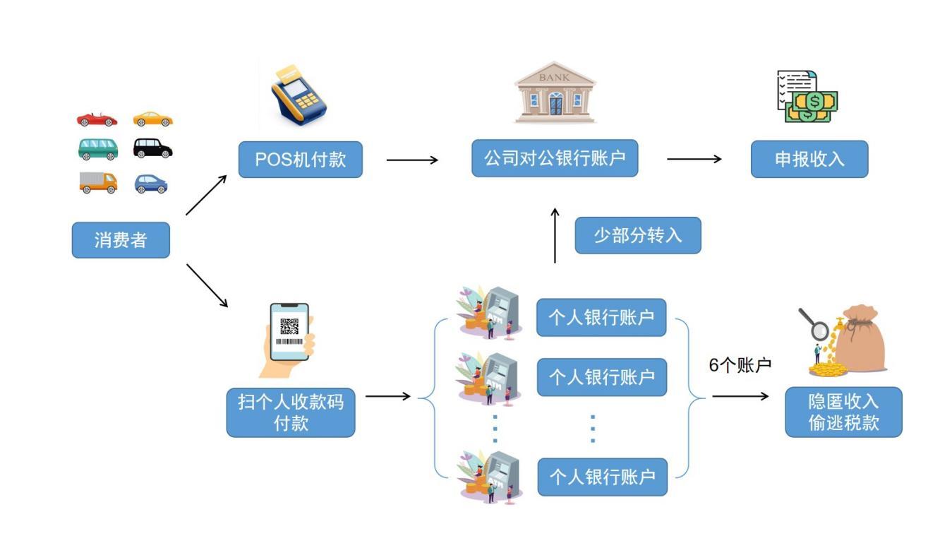 在證據(jù)面前,公司法人最終承認(rèn)了違法事實(shí)。2021年至2022年,該加油站采取“雙軌制”收款模式,既使用綁定對(duì)公銀行賬戶的POS機(jī),也同步啟用相關(guān)個(gè)人收款二維碼。其中,對(duì)公銀行賬戶收款按規(guī)定正常申報(bào)納稅,而個(gè)人收款碼收取的大部分加油款則被刻意“雪藏”,未進(jìn)行申報(bào)納稅,直至2023年才停用個(gè)人收款二維碼。