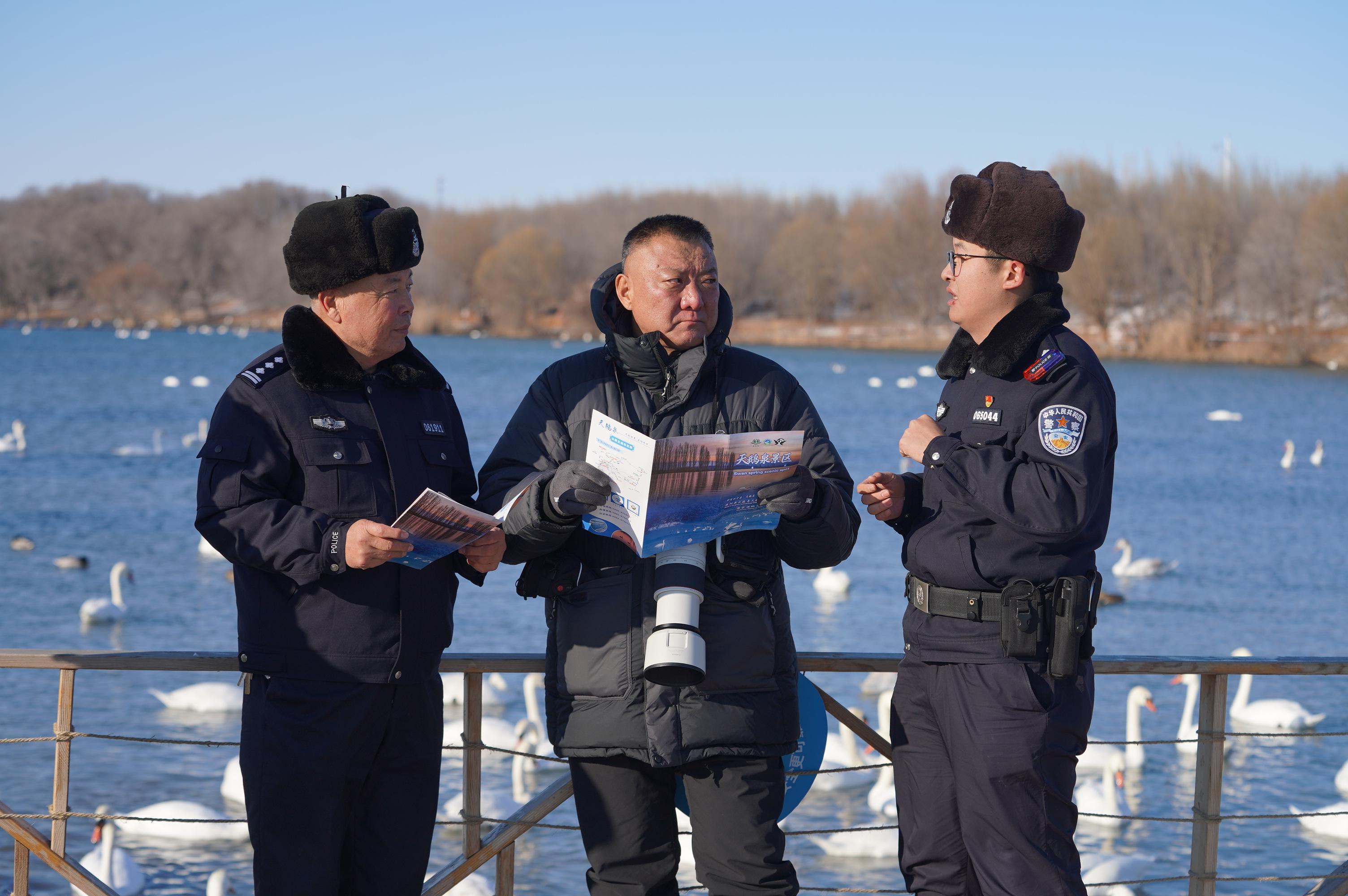 “天鵝警護(hù)隊(duì)”并非單純執(zhí)行警務(wù),日常工作中,隊(duì)員們?cè)陂_(kāi)展治安巡邏、處理游客求助的同時(shí),格外注重對(duì)天鵝等候鳥(niǎo)及其棲息環(huán)境的巡護(hù)。勸阻驚擾候鳥(niǎo)行為、撿拾湖區(qū)垃圾、觀察記錄鳥(niǎo)類活動(dòng)狀況、向游客宣傳生態(tài)保護(hù)知識(shí),已成為他們的常規(guī)任務(wù)。