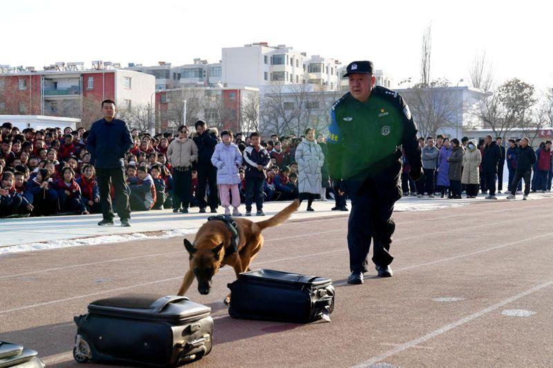 另一邊,警犬演示區(qū)域同樣人氣爆棚。訓(xùn)導(dǎo)員帶著訓(xùn)練有素的警犬登場,瞬間吸引了全體師生的目光。在訓(xùn)導(dǎo)員的指令下,警犬依次展示了服從指令、搜爆排查等科目,動作迅猛精準、配合默契無間。演示過程中,訓(xùn)導(dǎo)員還向同學們講解了警犬的品種、訓(xùn)練日常,不少同學主動提問,近距離觀察警犬,感受人與犬之間的默契與堅守,現(xiàn)場掌聲此起彼伏。