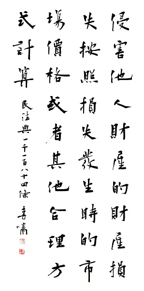 第一千一百八十四條 侵害他人財產(chǎn)的,財產(chǎn)損失按照損失發(fā)生時的市場價格或者其他合理方式計算。