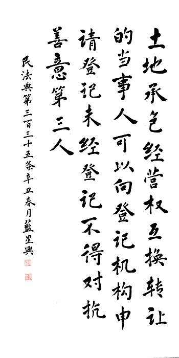 民法典第三百三十五條 土地承包經營權互換、轉讓的,當事人可以向登記機構申請登記;未經登記,不得對抗善意第三人。