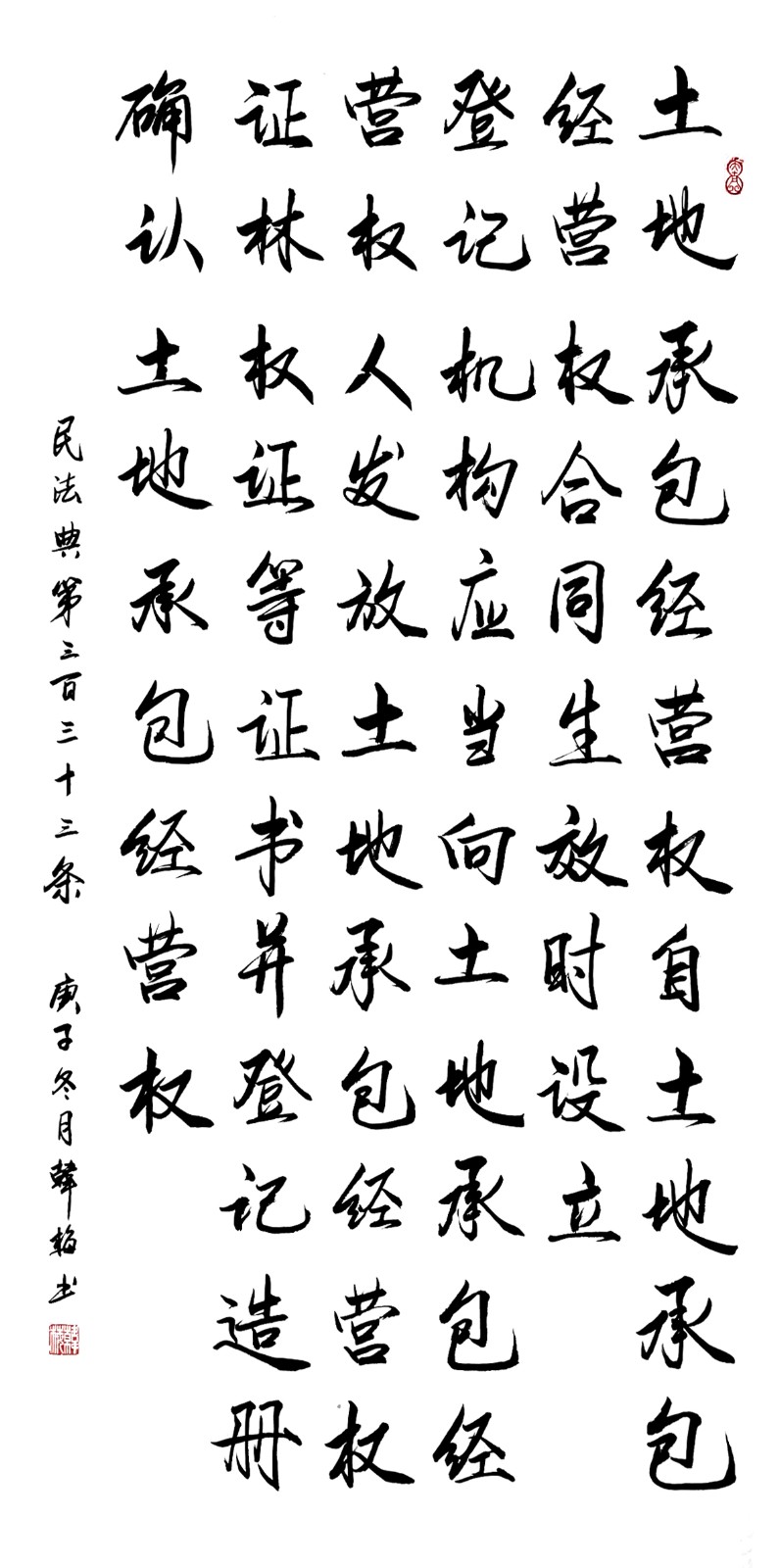 民法典第三百三十三條 土地承包經(jīng)營權(quán)自土地承包經(jīng)營權(quán)合同生效時(shí)設(shè)立。
