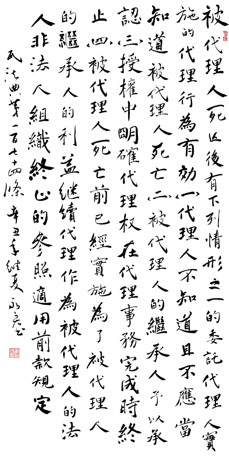 民法典第一百七十四條 被代理人死亡后,有下列情形之一的,委托代理人實施的代理行為有效: