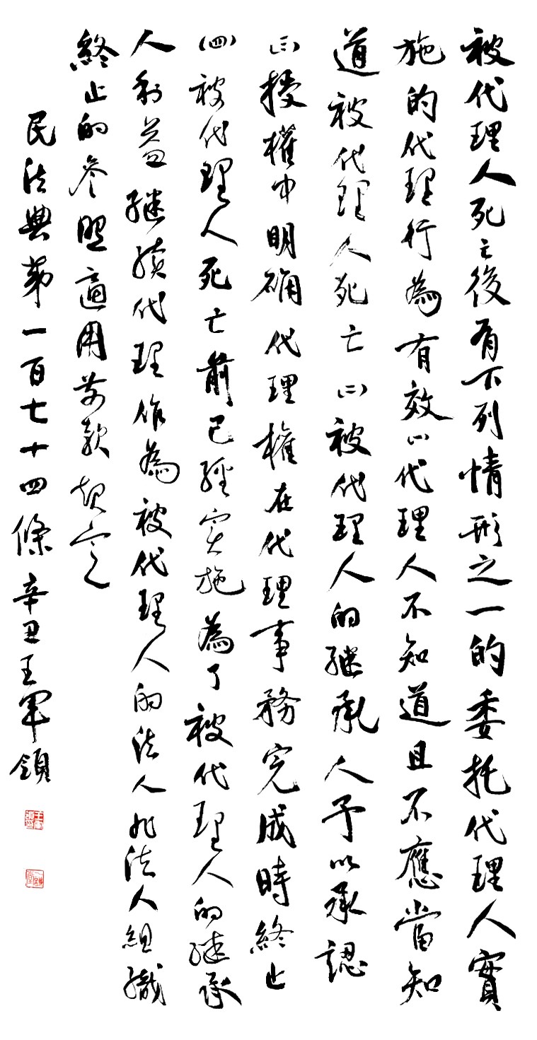 民法典第一百七十四條 被代理人死亡后,有下列情形之一的,委托代理人實(shí)施的代理行為有效: