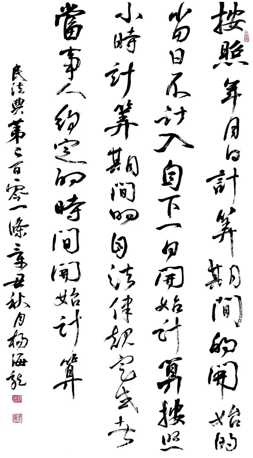 民法典第二百零一條 按照年、月、日計算期間的,開始的當日不計入,自下一日開始計算。