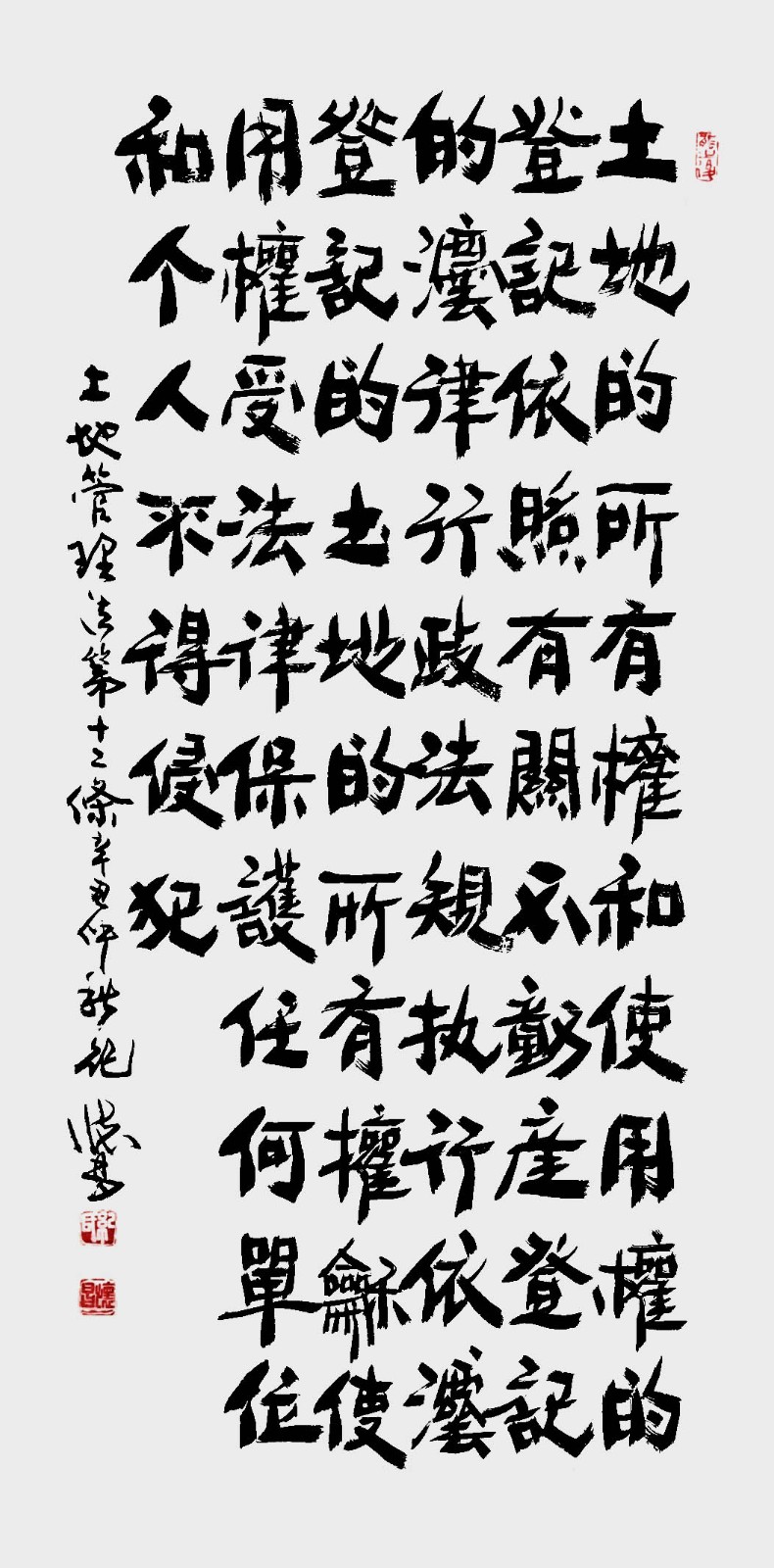 繼1600余位書法家參與書寫《中華人民共和國民法典》全部1260條法條之后,法治日報社聯(lián)合自然資源部法規(guī)司、自然資源部書畫研究會和北京昌平書法家協(xié)會,將筆端對準(zhǔn)土地管理“一法一條例”,即《中華人民共和國土地管理法》和《中華人民共和國土地管理法實施條例》。