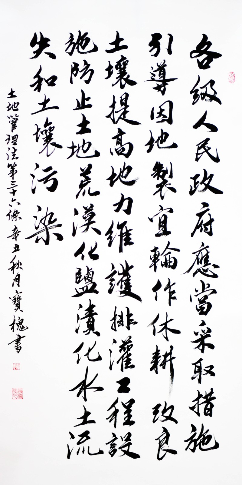 繼1600余位書法家參與書寫《中華人民共和國民法典》全部1260條法條之后,法治日報社聯合自然資源部法規(guī)司、自然資源部書畫研究會和北京昌平書法家協(xié)會,將筆端對準土地管理“一法一條例”,即《中華人民共和國土地管理法》和《中華人民共和國土地管理法實施條例》。
