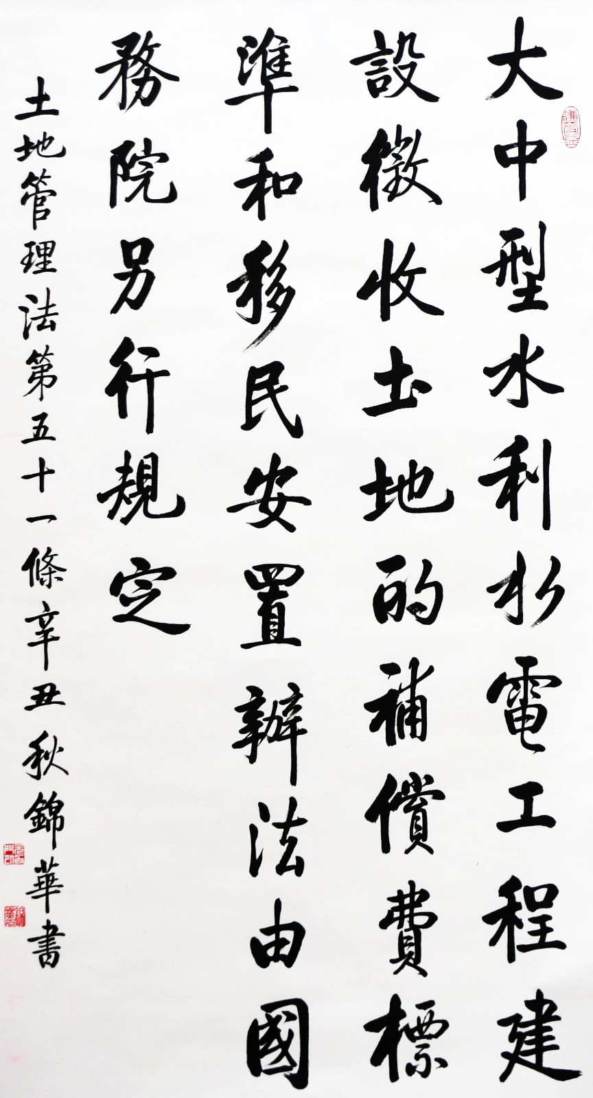 繼1600余位書法家參與書寫《中華人民共和國民法典》全部1260條法條之后,法治日報(bào)社聯(lián)合自然資源部法規(guī)司、自然資源部書畫研究會(huì)和北京昌平書法家協(xié)會(huì),將筆端對準(zhǔn)土地管理“一法一條例”,即《中華人民共和國土地管理法》和《中華人民共和國土地管理法實(shí)施條例》。