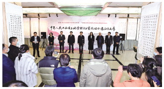 12月1日,“書·法”系列活動(dòng)——中華人民共和國土地管理法與實(shí)施條例書法作品展在中國地質(zhì)博物館開幕。圖為開幕式現(xiàn)場。 法治日?qǐng)?bào)全媒體記者 楊晉峰 攝