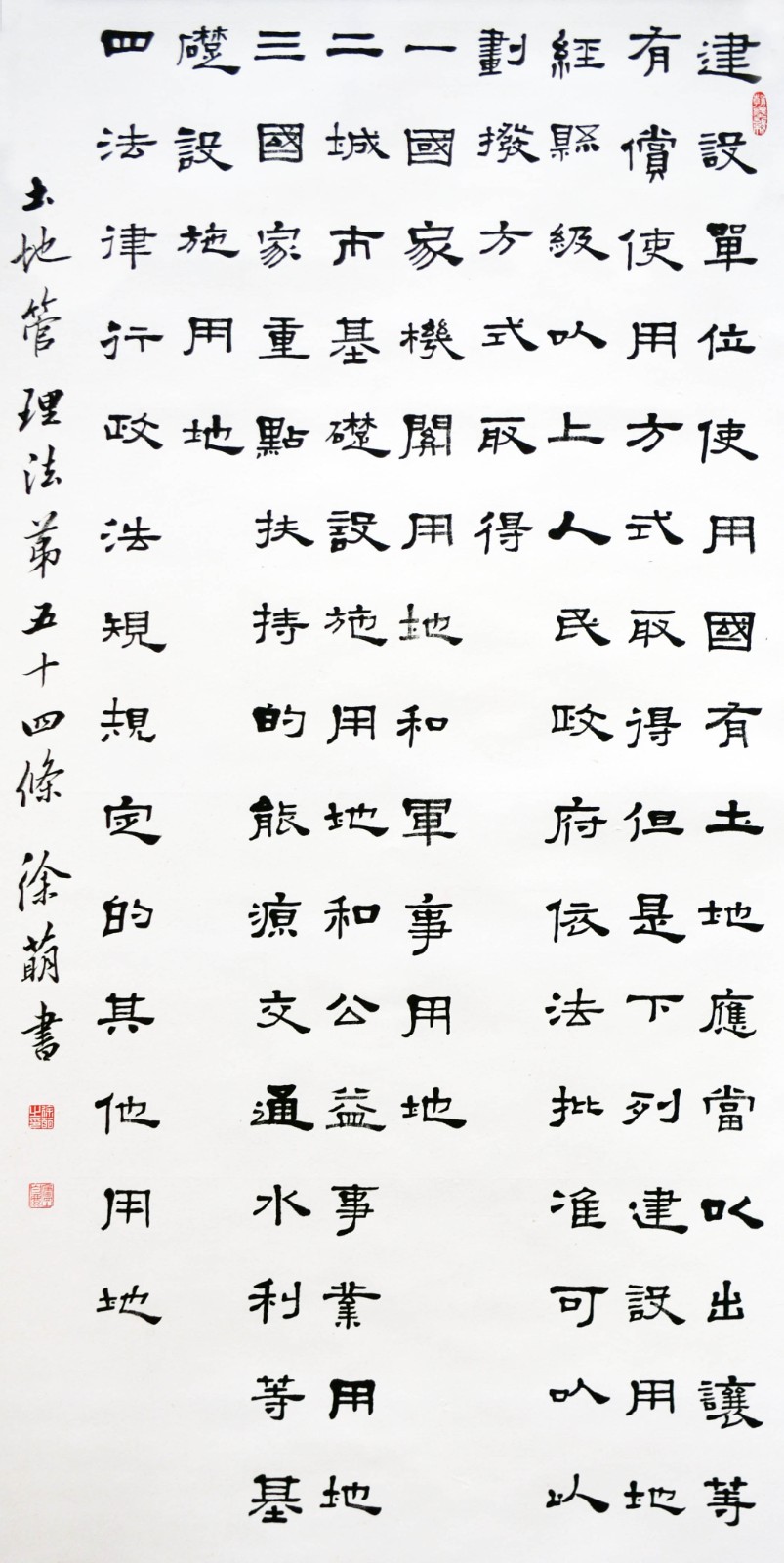 繼1600余位書法家參與書寫《中華人民共和國民法典》全部1260條法條之后,法治日報社聯(lián)合自然資源部法規(guī)司、自然資源部書畫研究會和北京昌平書法家協(xié)會,將筆端對準(zhǔn)土地管理“一法一條例”,即《中華人民共和國土地管理法》和《中華人民共和國土地管理法實施條例》。