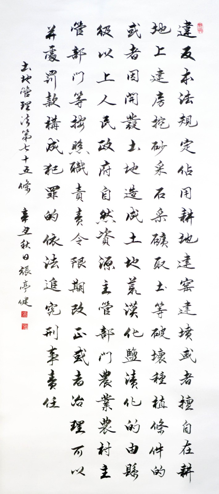 繼1600余位書(shū)法家參與書(shū)寫(xiě)《中華人民共和國(guó)民法典》全部1260條法條之后,法治日?qǐng)?bào)社聯(lián)合自然資源部法規(guī)司、自然資源部書(shū)畫(huà)研究會(huì)和北京昌平書(shū)法家協(xié)會(huì),將筆端對(duì)準(zhǔn)土地管理“一法一條例”,即《中華人民共和國(guó)土地管理法》和《中華人民共和國(guó)土地管理法實(shí)施條例》。