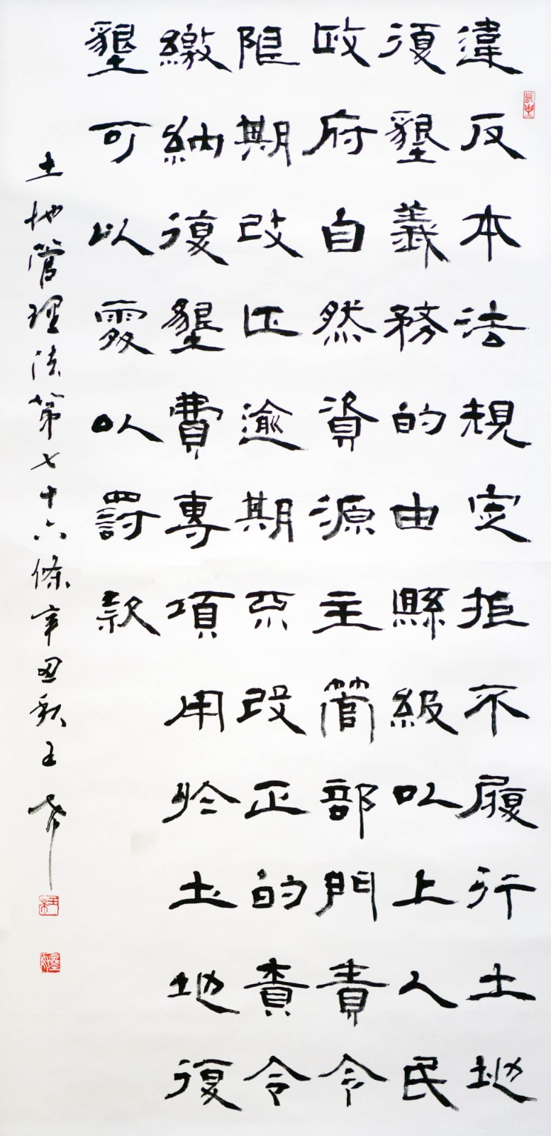 繼1600余位書法家參與書寫《中華人民共和國(guó)民法典》全部1260條法條之后,法治日?qǐng)?bào)社聯(lián)合自然資源部法規(guī)司、自然資源部書畫研究會(huì)和北京昌平書法家協(xié)會(huì),將筆端對(duì)準(zhǔn)土地管理“一法一條例”,即《中華人民共和國(guó)土地管理法》和《中華人民共和國(guó)土地管理法實(shí)施條例》。