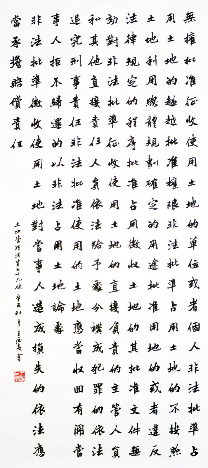 繼1600余位書法家參與書寫《中華人民共和國(guó)民法典》全部1260條法條之后,法治日?qǐng)?bào)社聯(lián)合自然資源部法規(guī)司、自然資源部書畫研究會(huì)和北京昌平書法家協(xié)會(huì),將筆端對(duì)準(zhǔn)土地管理“一法一條例”,即《中華人民共和國(guó)土地管理法》和《中華人民共和國(guó)土地管理法實(shí)施條例》。