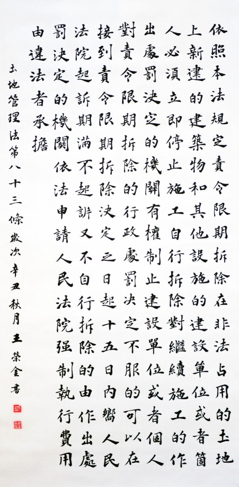 繼1600余位書(shū)法家參與書(shū)寫(xiě)《中華人民共和國(guó)民法典》全部1260條法條之后,法治日?qǐng)?bào)社聯(lián)合自然資源部法規(guī)司、自然資源部書(shū)畫(huà)研究會(huì)和北京昌平書(shū)法家協(xié)會(huì),將筆端對(duì)準(zhǔn)土地管理“一法一條例”,即《中華人民共和國(guó)土地管理法》和《中華人民共和國(guó)土地管理法實(shí)施條例》。