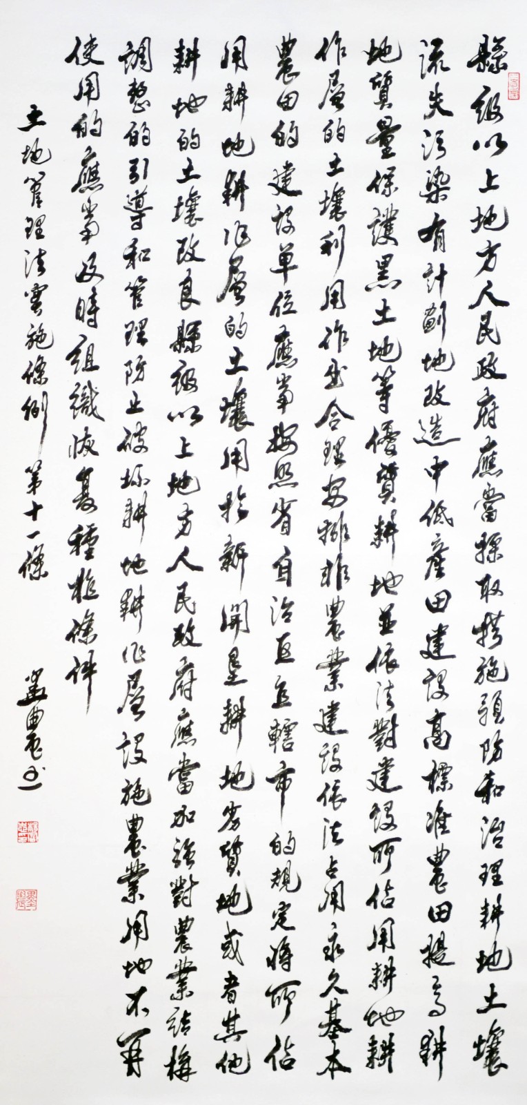 繼1600余位書法家參與書寫《中華人民共和國民法典》全部1260條法條之后,法治日報社聯(lián)合自然資源部法規(guī)司、自然資源部書畫研究會和北京昌平書法家協(xié)會,將筆端對準(zhǔn)土地管理“一法一條例”,即《中華人民共和國土地管理法》和《中華人民共和國土地管理法實施條例》。