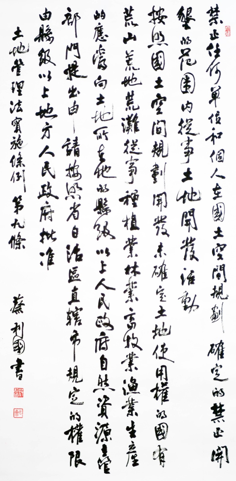 繼1600余位書法家參與書寫《中華人民共和國民法典》全部1260條法條之后,法治日報(bào)社聯(lián)合自然資源部法規(guī)司、自然資源部書畫研究會(huì)和北京昌平書法家協(xié)會(huì),將筆端對準(zhǔn)土地管理“一法一條例”,即《中華人民共和國土地管理法》和《中華人民共和國土地管理法實(shí)施條例》。