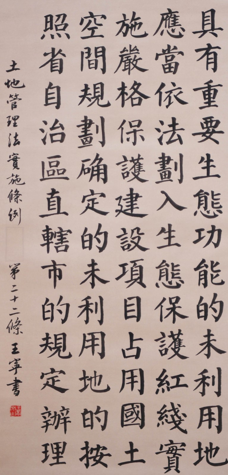 繼1600余位書(shū)法家參與書(shū)寫(xiě)《中華人民共和國(guó)民法典》全部1260條法條之后,法治日?qǐng)?bào)社聯(lián)合自然資源部法規(guī)司、自然資源部書(shū)畫(huà)研究會(huì)和北京昌平書(shū)法家協(xié)會(huì),將筆端對(duì)準(zhǔn)土地管理“一法一條例”,即《中華人民共和國(guó)土地管理法》和《中華人民共和國(guó)土地管理法實(shí)施條例》。